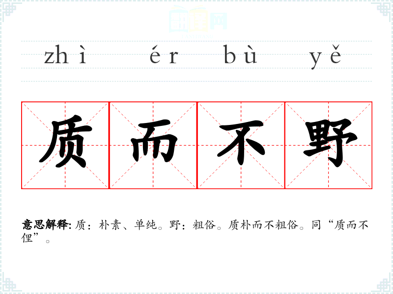 质:朴素、单纯。野:粗俗。质朴而不粗俗。同“