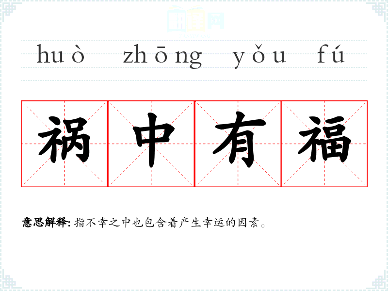 "祸中有福"的意思解释、祸中有福是什么意思由翻译网汉语词典查词提供。