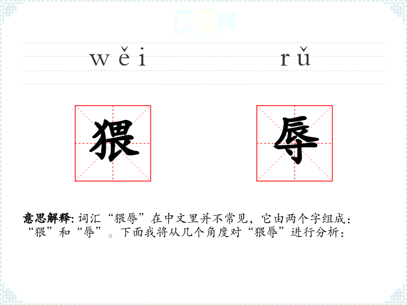 词汇“猥辱”在中文里并不常见,它由两个字组成:“猥”和“辱”。下面我将从几个角度对“猥辱”进行分析: