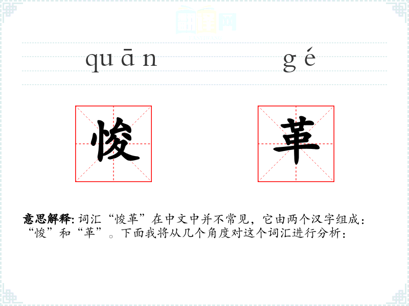 词汇“悛革”在中文中并不常见,它由两个汉字组成:“悛”和“革”。下面我将从几个角度对这个词汇进行分析: