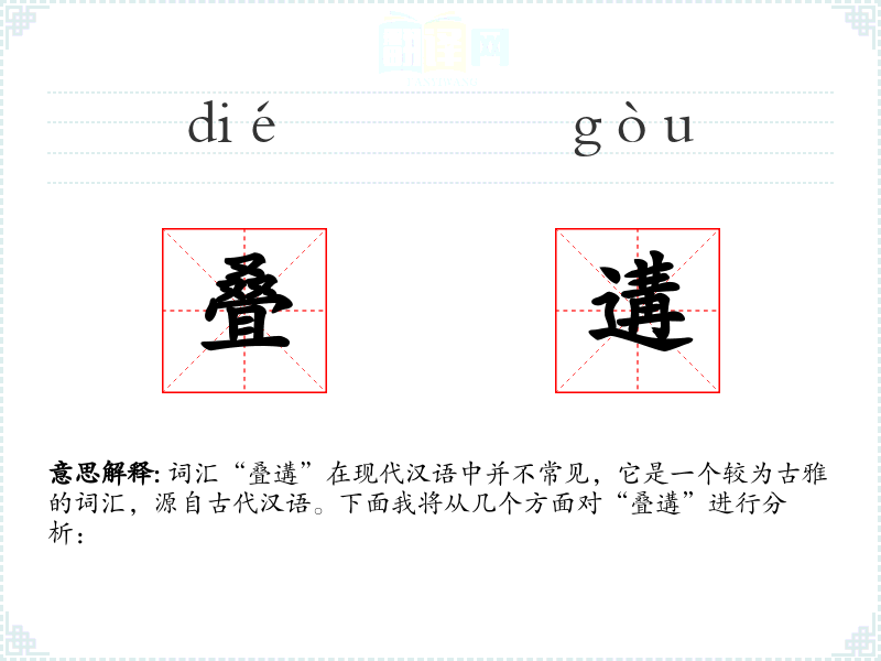 词汇“叠遘”在现代汉语中并不常见,它是一个较为古雅的词汇,源自古代汉语。下面我将从几个方面对“叠遘”进行分析: