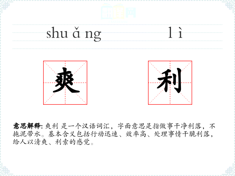 - 专业领域:在商业或管理领域,“爽利”可能用来形容决策或执行的速度和效率。
