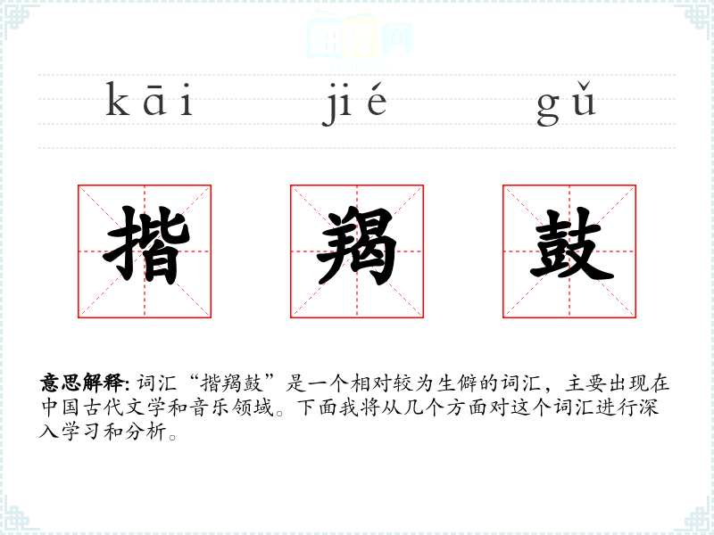 词汇“揩羯鼓”是一个相对较为生僻的词汇,主要出现在*古代文学和音乐领域。下面我将从几个方面对这个词汇进行深入学和分析。