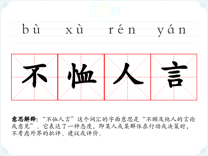 “不恤人言”这个词汇的字面意思是“不顾及他人的言论或意见”。它表达了一种态度,即某人或某群体在行动或决策时,不考虑外界的批评、建议或评价。