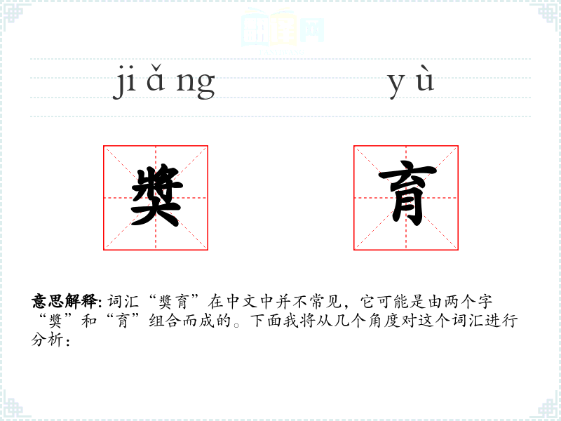 词汇“奬育”在中文中并不常见,它可能是由两个字“奬”和“育”组合而成的。下面我将从几个角度对这个词汇进行分析: