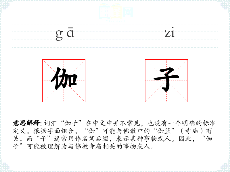 - 反义词:俗人、凡人(如果“伽子”指代**僧人)