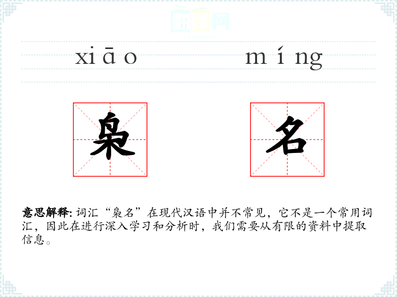 词汇“枭名”在现代汉语中并不常见,它不是一个常用词汇,因此在进行深入学*和分析时,我们需要从有限的资料中提取信息。