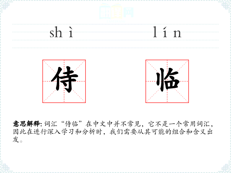词汇“侍临”在中文中并不常见,它不是一个常用词汇,因此在进行深入学*和分析时,我们需要从其可能的组合和含义出发。