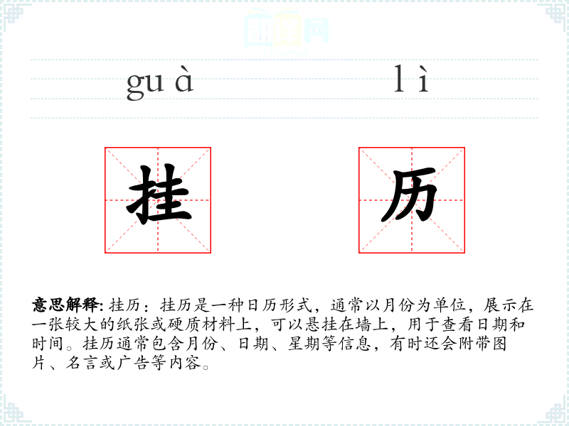 挂历的意思