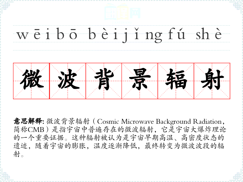 在不同语言中,微波背景辐射的翻译可能有所不同,但其科学含义和重要性在全球范围内是一致的。