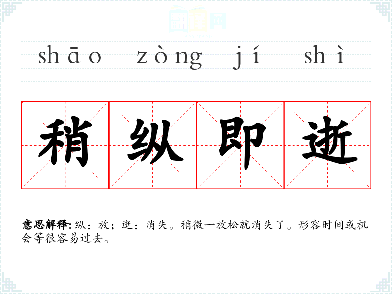 纵:放;逝:消失。稍微一放松就消失了。形容时间或机会等很容易过去。