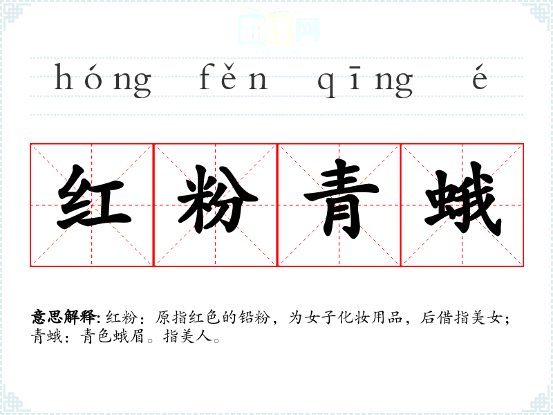 红粉:原指红色的铅粉,为女子化妆用品,后借指美女;青蛾:青色蛾眉。指美人。