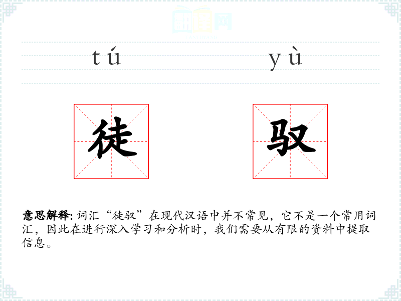 词汇“徒驭”在现代汉语中并不常见,它不是一个常用词汇,因此在进行深入学习和分析时,我们需要从有限的资料中提取信息。