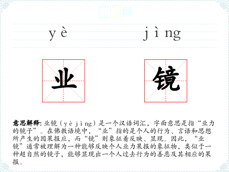 - 反义词:无(由于“业镜”是一个特定**概念,没有直接的反义词)。