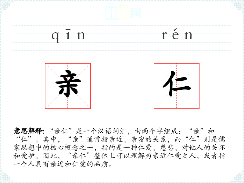 “亲仁”一词源自儒家文化,特别是孔子的教诲。在古代文献中,如《论语》中,孔子多次提到“仁”的概念,强调仁爱是人际关系和社会和谐的基础。随着时间的推移,“亲仁”逐渐成为描述个人品德和行为的一个常用词汇。