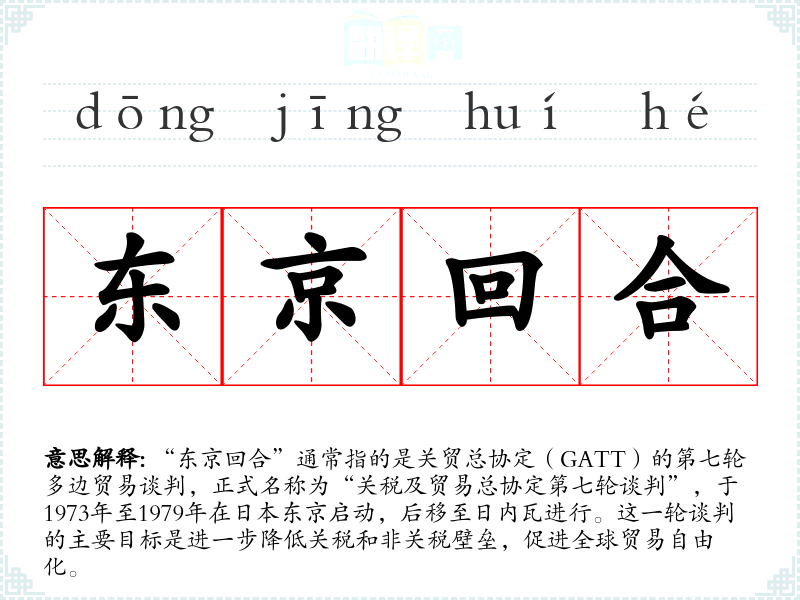 提到“东京回合”,可能会联想到全球化的进程、国际合作的重要性以及经济政策的复杂性。这个词可能会引起对过去历史**的回顾和对未来贸易趋势的思考。