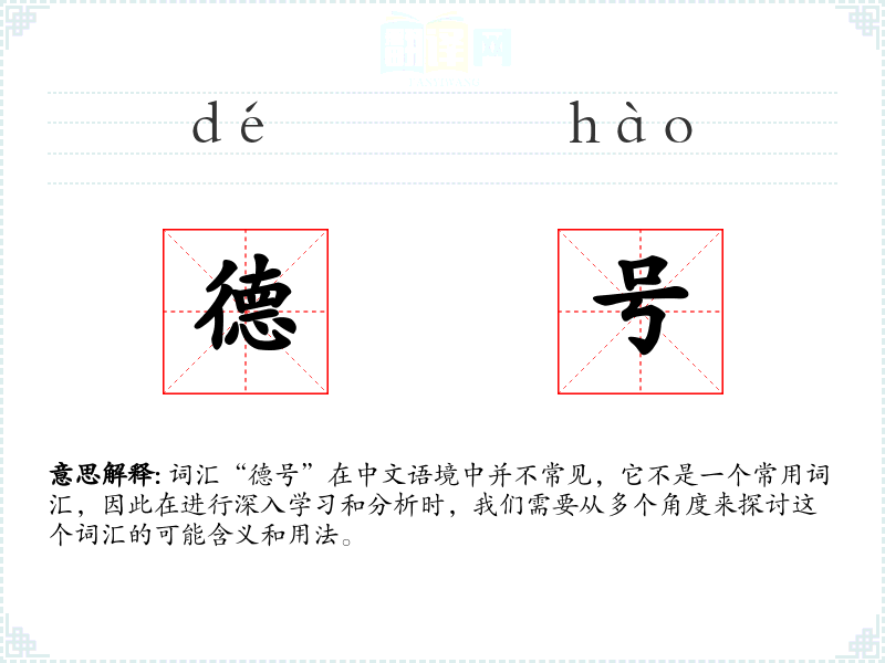 由于“德号”不是一个常用词汇,其词源和历史演变不详。它可能是现代汉语中的一个组合词,用于特定场合或特定文献中。