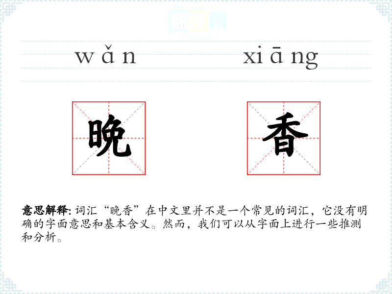 "晩香"的意思解释、晩香是什么意思由翻译网汉语词典查词提供。