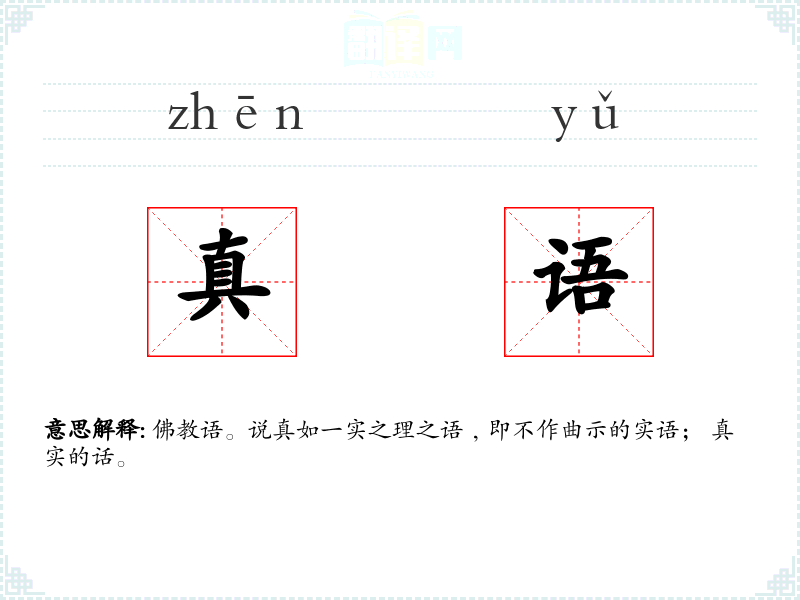 佛教语。说真如一实之理之语﹐即不作曲示的实语; 真实的话。