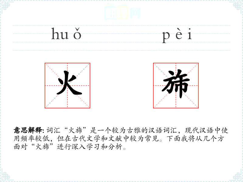词汇“火旆”是一个较为古雅的汉语词汇,现代汉语中使用频率较低,但在古代文学和文献中较为常见。下面我将从几个方面对“火旆”进行深入学*和分析。