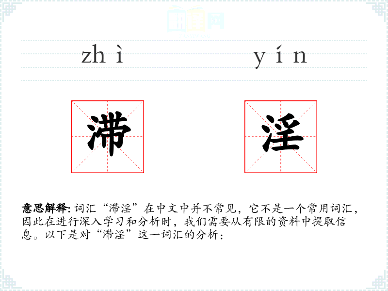 词汇“滞淫”在中文中并不常见,它不是一个常用词汇,因此在进行深入学习和分析时,我们需要从有限的资料中提取信息。以下是对“滞淫”这一词汇的分析: