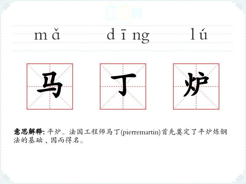 平炉。法国工程师马丁(pierremartin)首先奠定了平炉炼钢法的基础﹐因而得名。