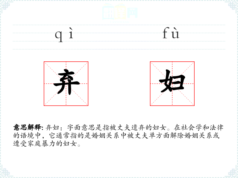 - 专业领域:在法律和社会学领域,“弃妇”可能涉及离婚法律、家庭暴力和妇女权益保护等议题。