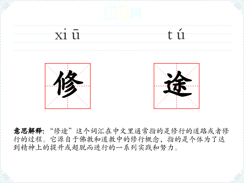 "修途"的意思解释、修途是什么意思由翻译网汉语词典查词提供。