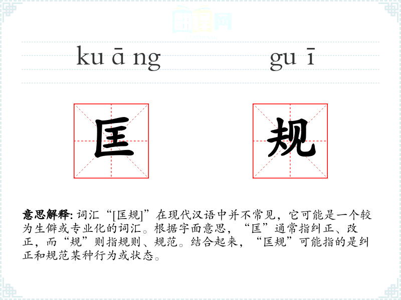- 词源:“匡”和“规”都是古代汉语词汇,具有悠久的历史。
