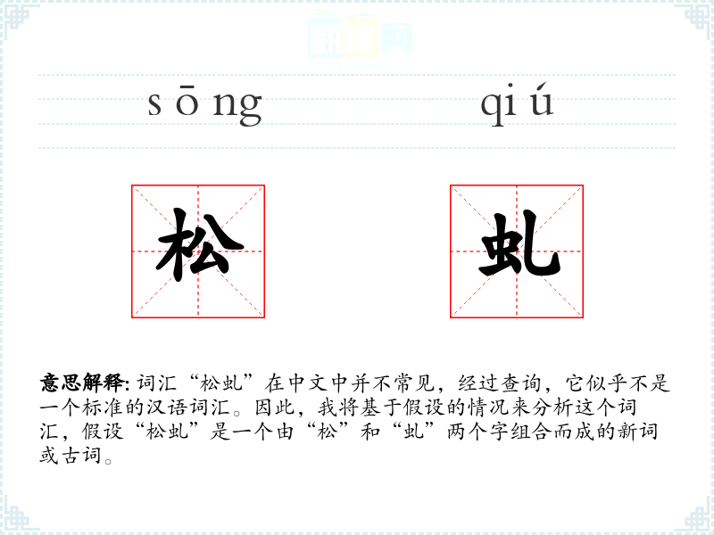 词汇“松虬”在中文中并不常见,经过查询,它似乎不是一个标准的汉语词汇。因此,我将基于假设的情况来分析这个词汇,假设“松虬”是一个由“松”和“虬”两个字组合而成的新词或古词。