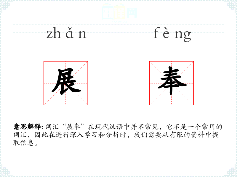 词汇“展奉”在现代汉语中并不常见,它不是一个常用的词汇,因此在进行深入学*和分析时,我们需要从有限的资料中提取信息。