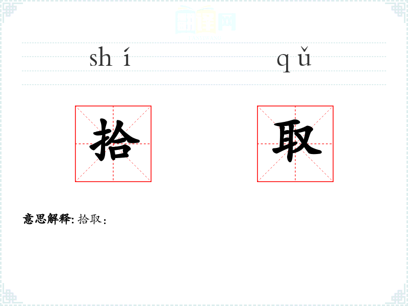 - 词源:“拾取”由“拾”和“取”两个字组成,“拾”意为捡起,“取”意为获取。
