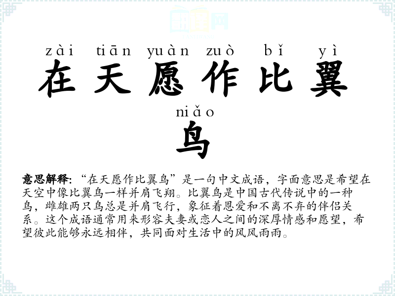 - 白头偕老:形容夫妻恩爱到老,与“在天愿作比翼鸟”都强调伴侣关系的持久和稳定。