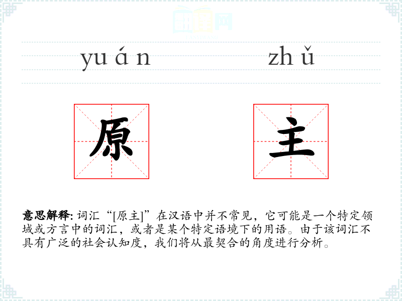 “原主”字面意思是指原本的主人或最初的持有者。在某些情况下,它可能指的是某物的原始所有者。