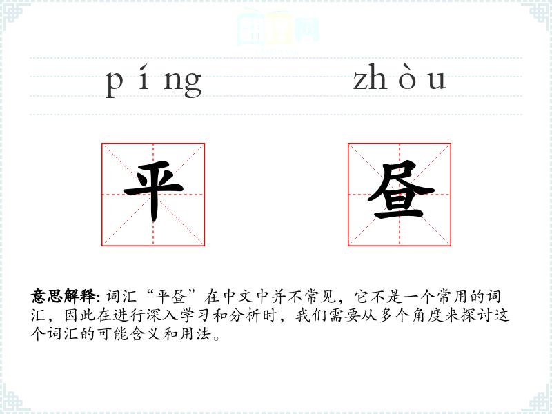 “平昼”字面意思可能是指“平静的白天”或“平常的白天”。然而,由于这个词汇不常见,它的确切含义可能需要结合具体的语境来确定。