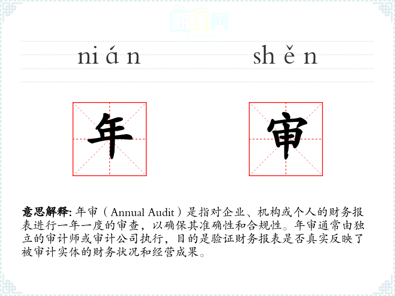 年审一词由“年”和“审”两个字组成。在古代汉语中,“年”指一年,“审”指审查或检查。随着现代会计和审计制度的发展,年审成为了一个专业术语,用于描述一年一度的财务审查。