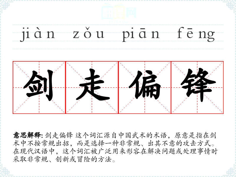 "剑走偏锋"的意思解释、剑走偏锋是什么意思由翻译网汉语词典查词提供。