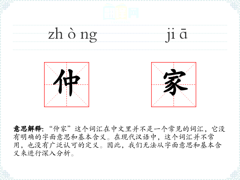 由于“仲家”不是一个常用词汇,我们无法分析该词汇在特定文化或社会背景中的意义和影响。