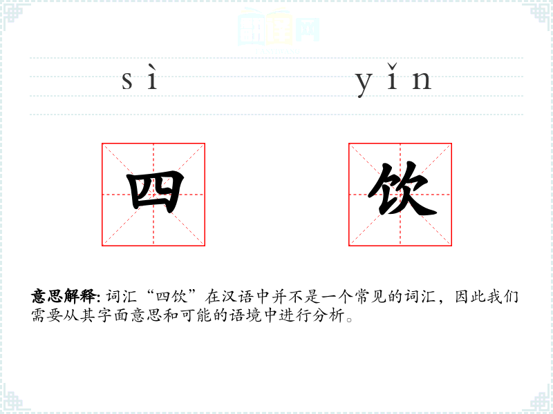 词汇“四饮”在汉语中并不是一个常见的词汇,因此我们需要从其字面意思和可能的语境中进行分析。