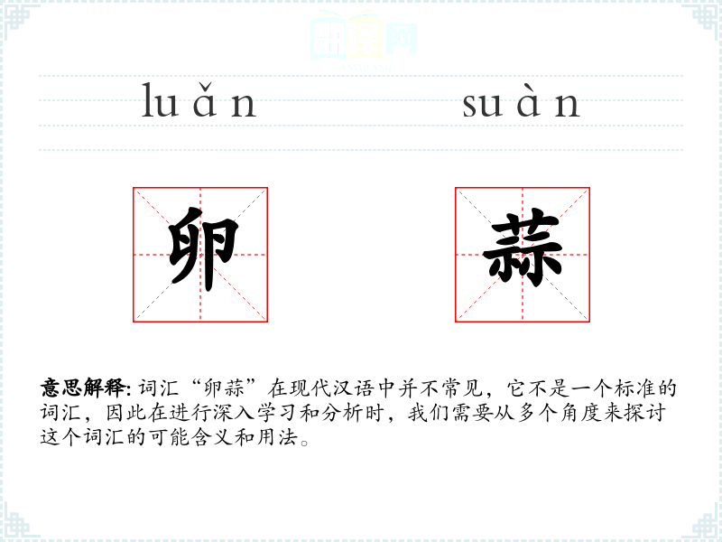 词汇“卵蒜”在现代汉语中并不常见,它不是一个标准的词汇,因此在进行深入学*和分析时,我们需要从多个角度来探讨这个词汇的可能含义和用法。
