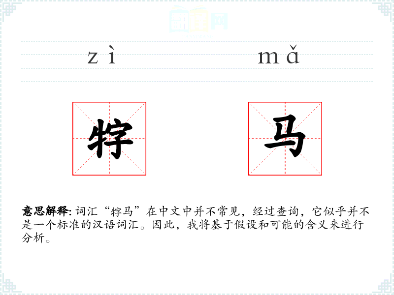 词汇“牸马”在中文中并不常见,经过查询,它似乎并不是一个标准的汉语词汇。因此,我将基于假设和可能的含义来进行分析。
