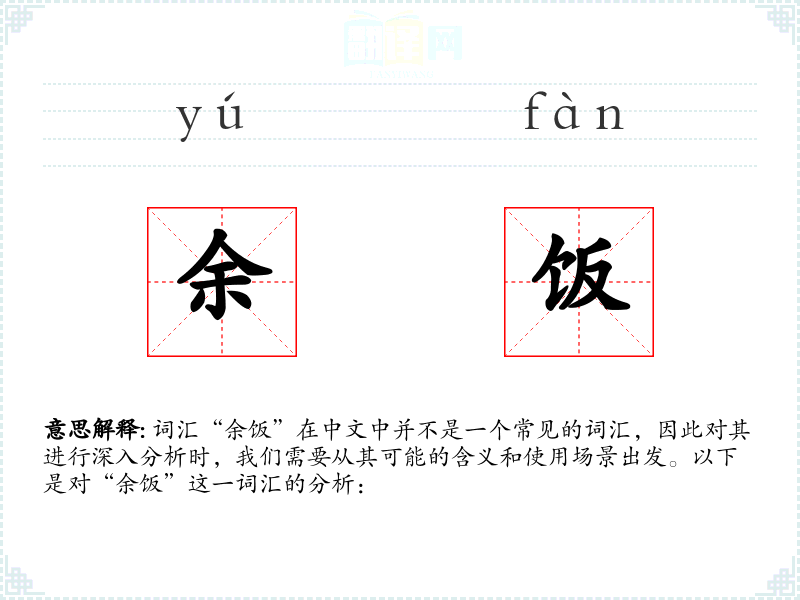 词汇“余饭”在中文中并不是一个常见的词汇,因此对其进行深入分析时,我们需要从其可能的含义和使用场景出发。以下是对“余饭”这一词汇的分析: