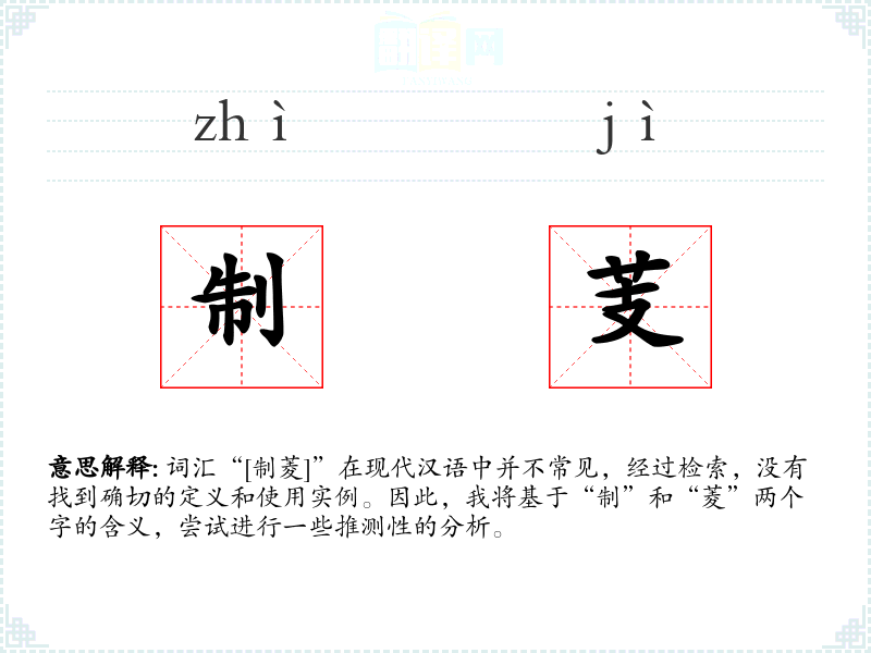 词汇“[制菱]”在现代汉语中并不常见,经过检索,没有找到确切的定义和使用实例。因此,我将基于“制”和“菱”两个字的含义,尝试进行一些推测性的分析。