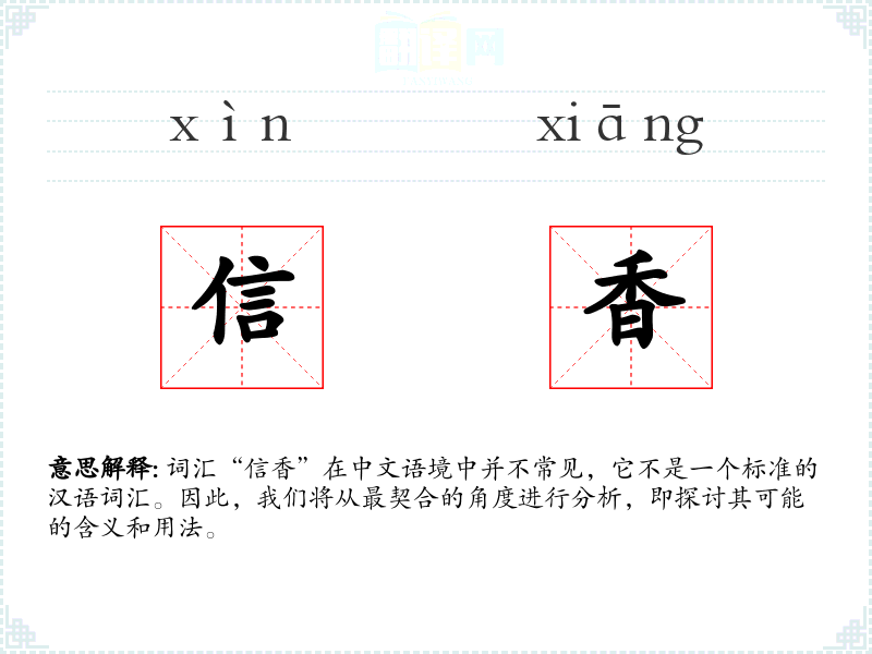 词汇“信香”在中文语境中并不常见,它不是一个标准的汉语词汇。因此,我们将从最契合的角度进行分析,即探讨其可能的含义和用法。