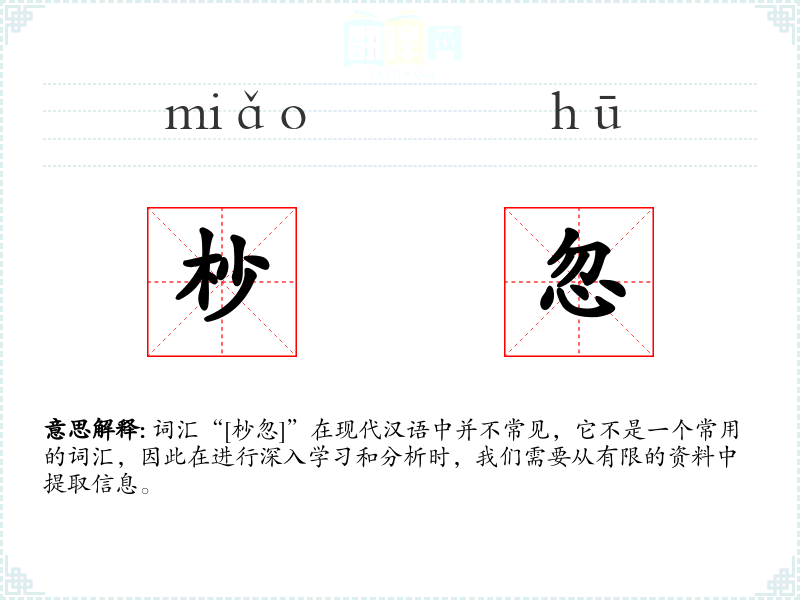 词汇“[杪忽]”在现代汉语中并不常见,它不是一个常用的词汇,因此在进行深入学习和分析时,我们需要从有限的资料中提取信息。