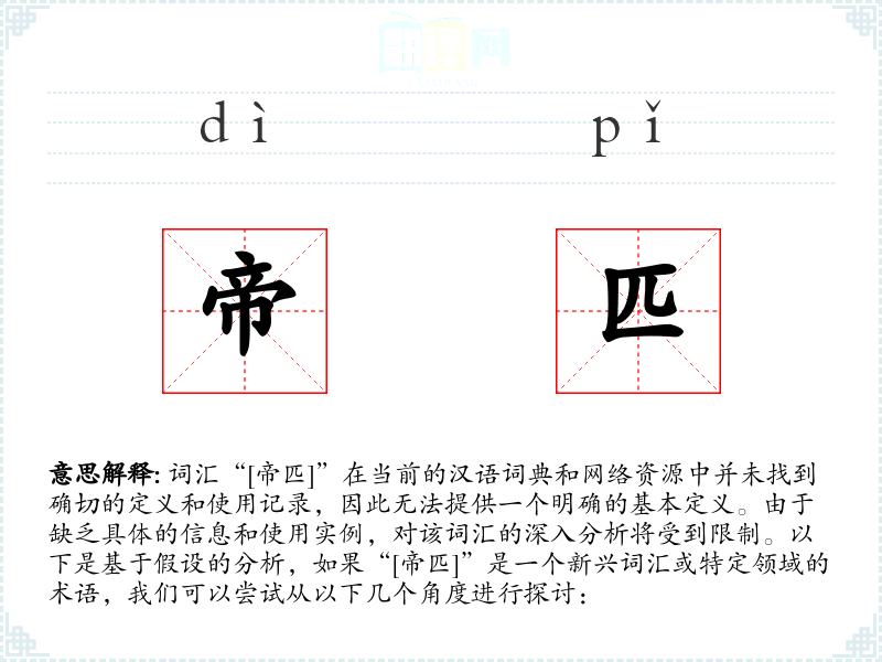 由于缺乏具体信息,我们无法提供“[帝匹]”的字面意思和基本含义。