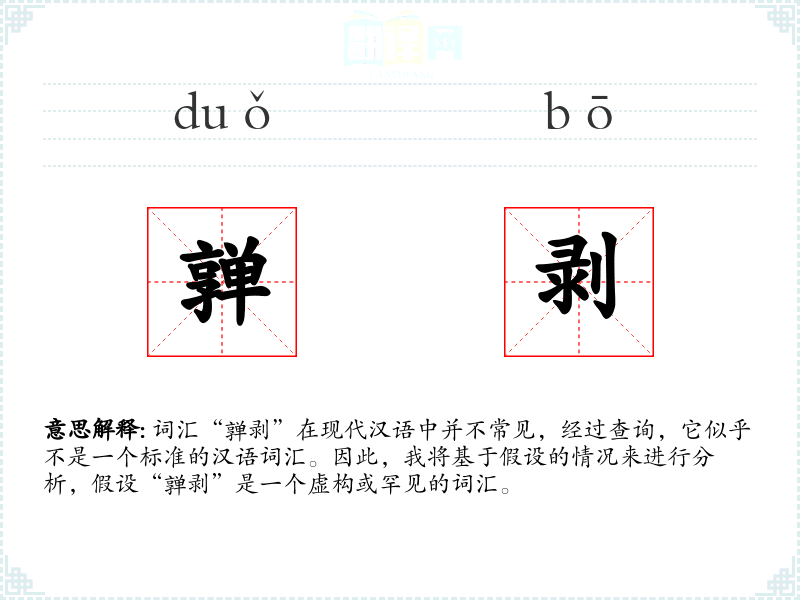 词汇“亸剥”在现代汉语中并不常见,经过查询,它似乎不是一个标准的汉语词汇。因此,我将基于假设的情况来进行分析,假设“亸剥”是一个虚构或罕见的词汇。