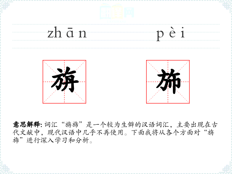 词汇“旃旆”是一个较为生僻的汉语词汇,主要出现在古代文献中,现代汉语中几乎不再使用。下面我将从各个方面对“旃旆”进行深入学*和分析。