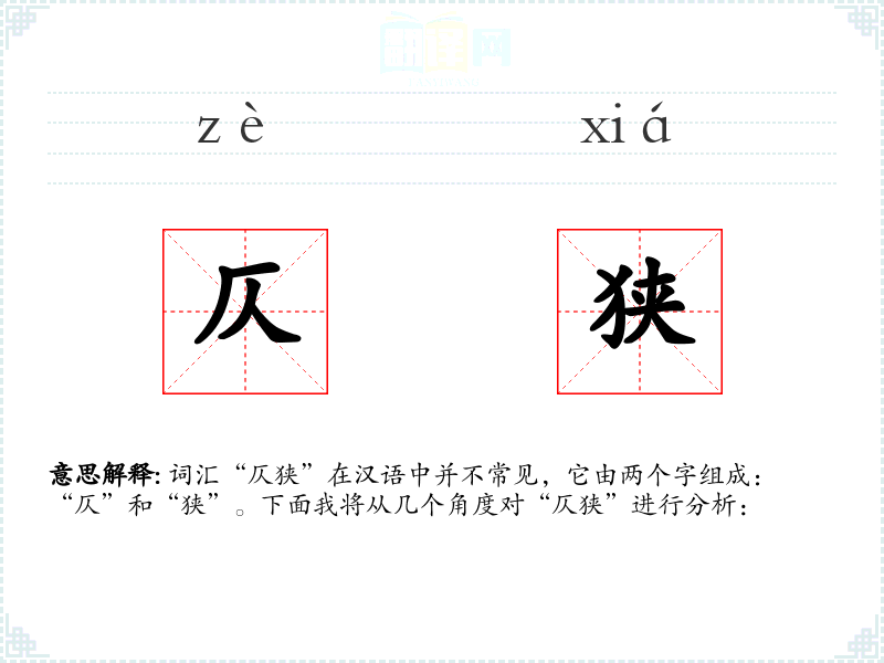 - “仄狭”是一个结合了声调和空间概念的词汇,它在文学和日常表达中都有一定的应用。了解这个词汇有助于更深入地理解汉语的丰富性和复杂性。