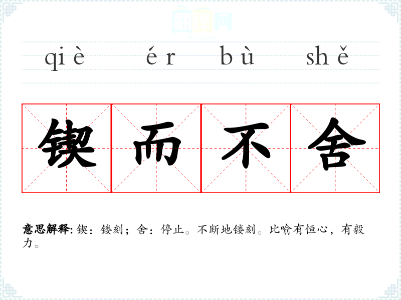 锲:镂刻;舍:停止。不断地镂刻。比喻有恒心,有毅力。